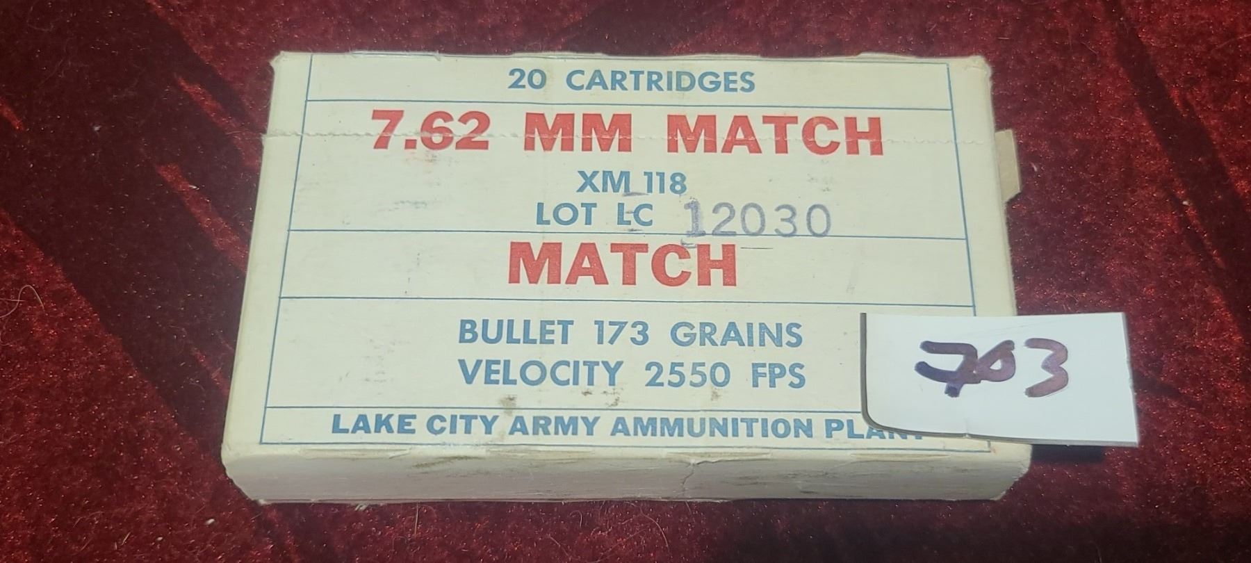 20 ROUND BOX OF MATCH 7.62 173 GR LAKE CITY AMMUNITION PLANT