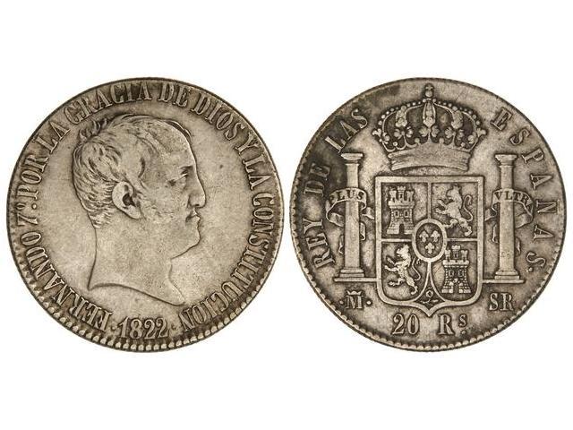 20 Reales. 1822. MADRID. S.R. Cal-516. MBC-.