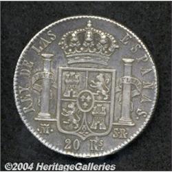 <B> 20 Reales 1823SR-M,</B></I> KM561 VF. <BR><BR><B>Important notice:</B> Heritage usually auctions material at the rate of 200-250 lots per hour. On some occasions eBay Live bid software or the Internet may not be able to keep up with the pace of the auction. We recommend placing a realistic absentee bid now as insurance to avoid disappointment. Occasionally the auctioneer may eliminate or reject an eBay Live bid, and the auctioneer may also reopen a lot after the close of the eBay live bidding (usually because we missed an audience bid), and may reject your bid even if it shows you as the winning bidder. By bidding via eBay Live, you agree that Heritage may award the lot to another bidder at its sole discretion under the circumstances described above or any other reasonable circumstances. Since eBay bids are not shown to us until we open the lot on the floor, we treat those bids just like floor bids. In most cases the floor responds before the eBay bid is presented to us, due to Internet lag time, so for consistency we have made it a policy that floor bids are always considered first over tie eBay live bids. Also please note that all Heritage lots purchased through eBay Live carry a 20% Buyer's Premium. Please make sure you read the Terms and Conditions before you bid.