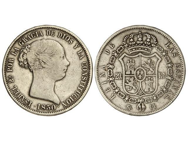 20 Reales. 1850. MADRID. C.L. (Golpecitos). Cal-170. BC+/MBC-.