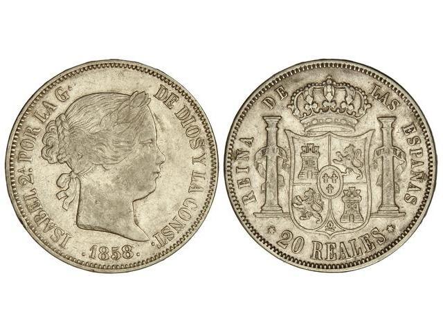 20 Reales. 1858. MADRID. (Golpecitos). Cal-180. MBC.