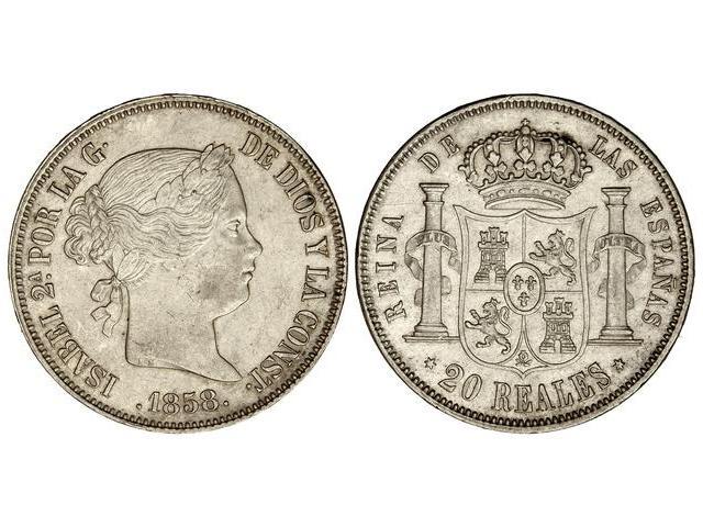 20 Reales. 1858. MADRID. (Ínfimas rayitas). ESCASA ASÍ. Cal-180. EBC.