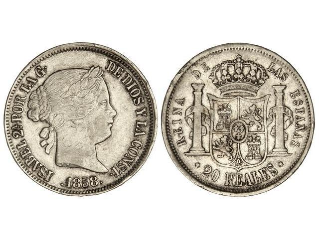 20 Reales. 1858. SEVILLA. (Golpecitos). MBC.