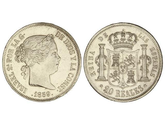 20 Reales. - 1859. - MADRID. - (Golpecitos y rayitas). Cal-181. EBC. - -