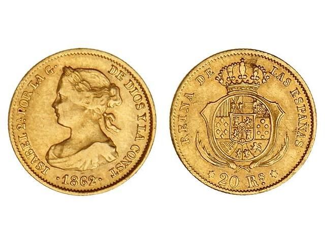 20 Reales. 1862/1. MADRID. MUY ESCASA. Cal-120. MBC.