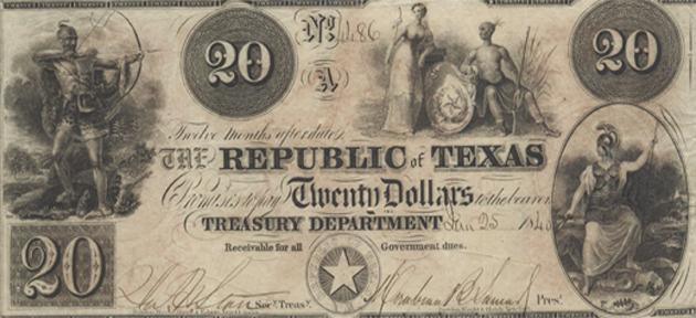 $20 Republic Of Texas Note