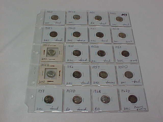 20 Roosevelt Dimes in 2x2, all Unc-BU, some toned, 20 dates, 1946D-62D