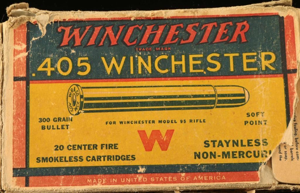 Vintage 20 round box of Winchester .405 Win 300 grain soft point ammunition.