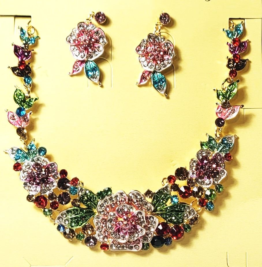 NECKLACE AND MATCHING FLOWER STUD DROP EARRINGS. JEWELERY