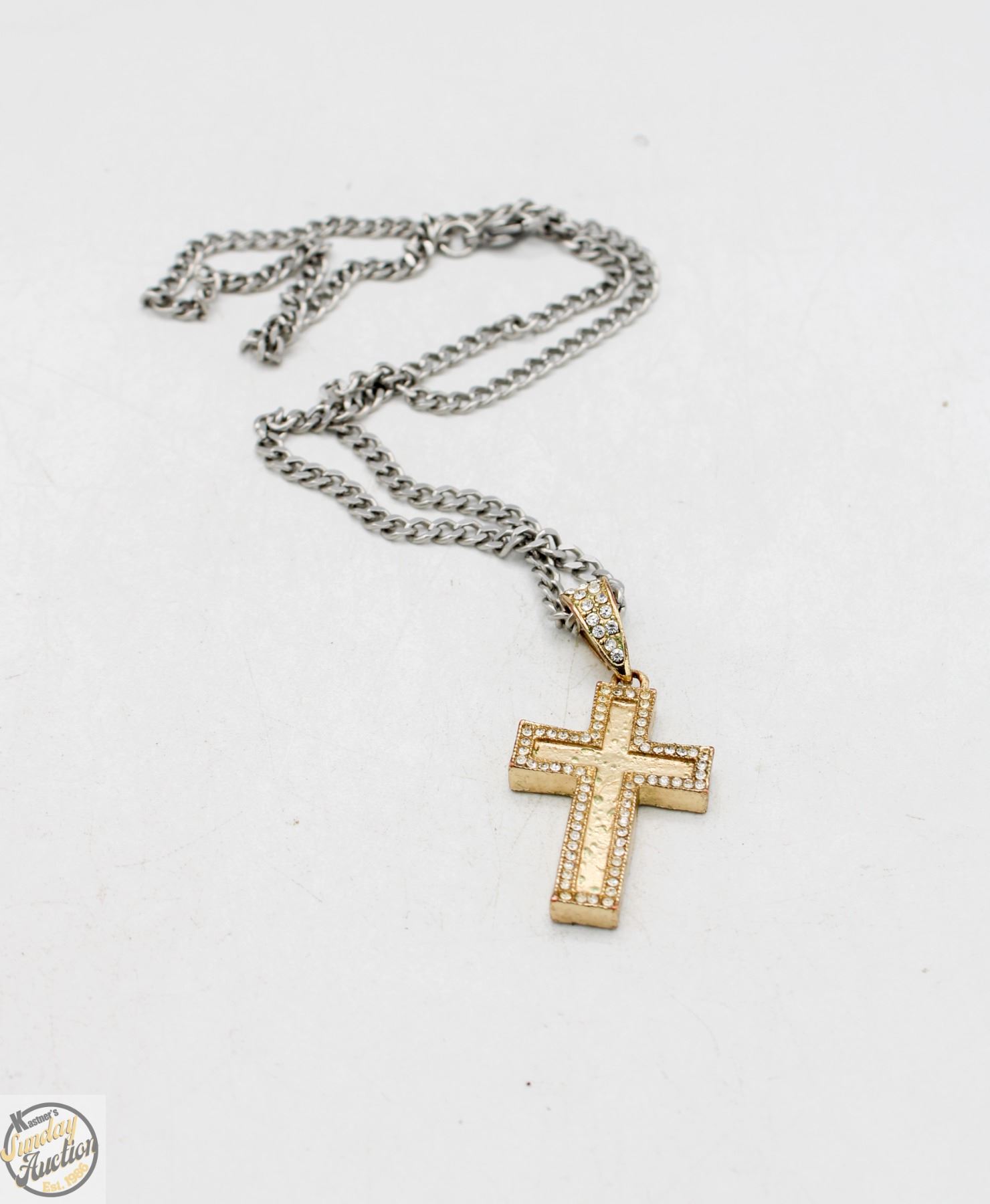 20" SILVER TONE LINK CHAIN WITH JEWELED CROSS PEN