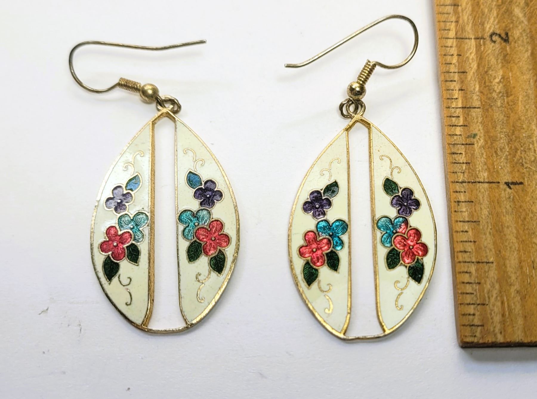 COLORED BACKGROUND AND CLOISONN ENAMEL FLOWERS. JEWELRY