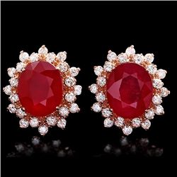 14K ROSE GOLD 10.00CT RUBY 1.40CT DIAMOND EARRINGS655 - 14K ROSE GOLD 10.00CT RUBY 1.40CT DIAMOND EARRINGS
