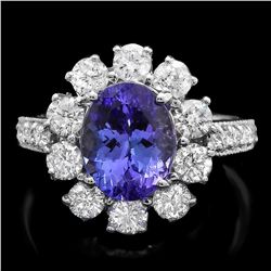 14K WHITE GOLD 3.00CT TANZANITE 1.40CT DIAMOND RING674 - 14K WHITE GOLD 3.00CT TANZANITE 1.40CT DIAMOND RING