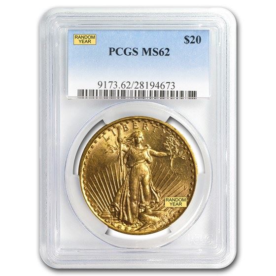 One piece $20 Saint-Gaudens Gold Double Eagle MS-62 PCGS (Random)