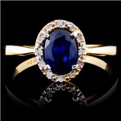 14K Yellow Gold 1.00ct Sapphire & 0.05ct Diamond R474 - 14K Yellow Gold 1.00ct Sapphire & 0.05ct Diamond R