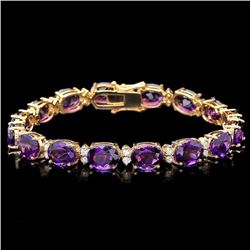 `14k Gold 29ct Amethyst 1.30ct Diamond Bracelet488 - `14k Gold 29ct Amethyst 1.30ct Diamond Bracelet
