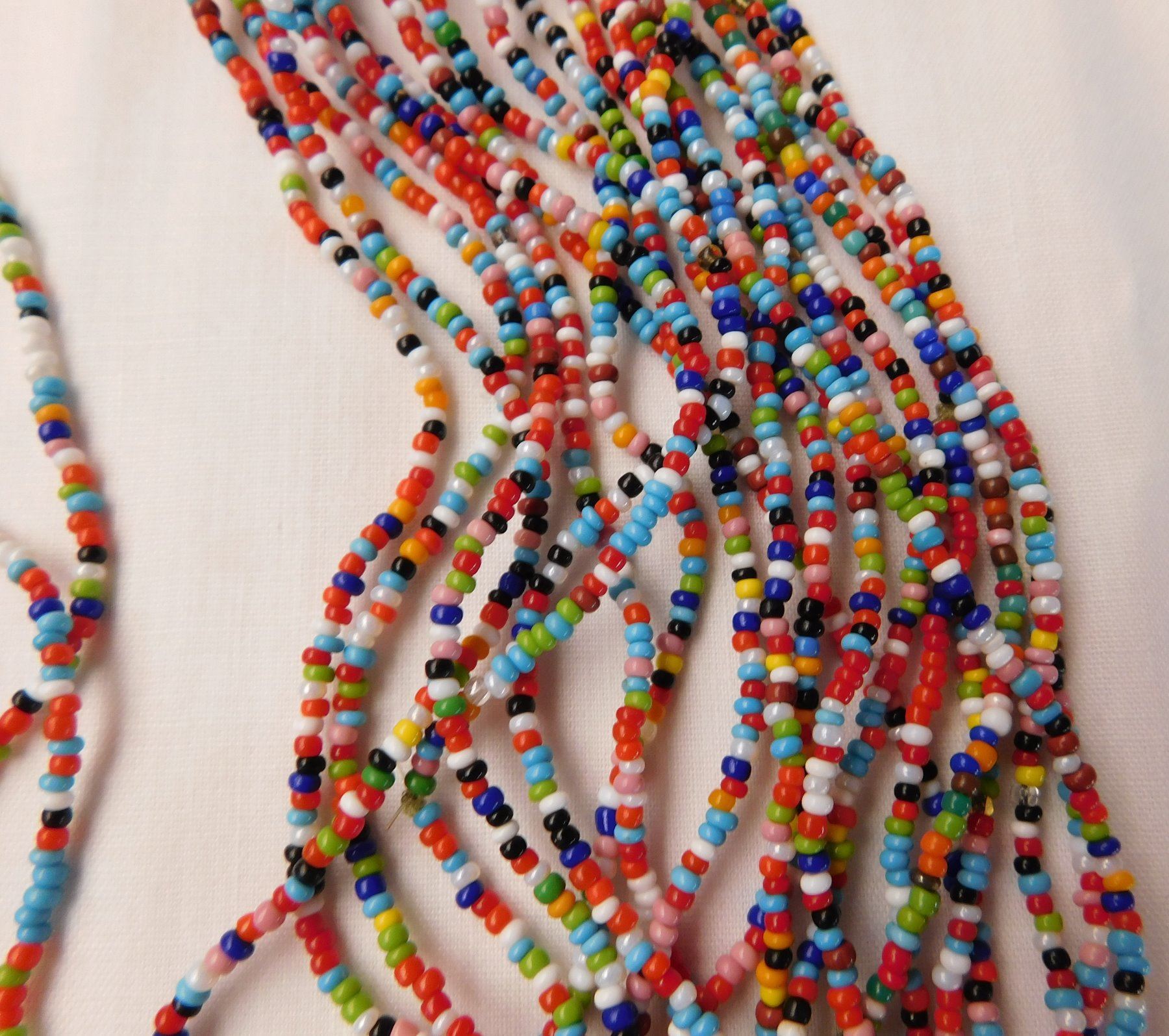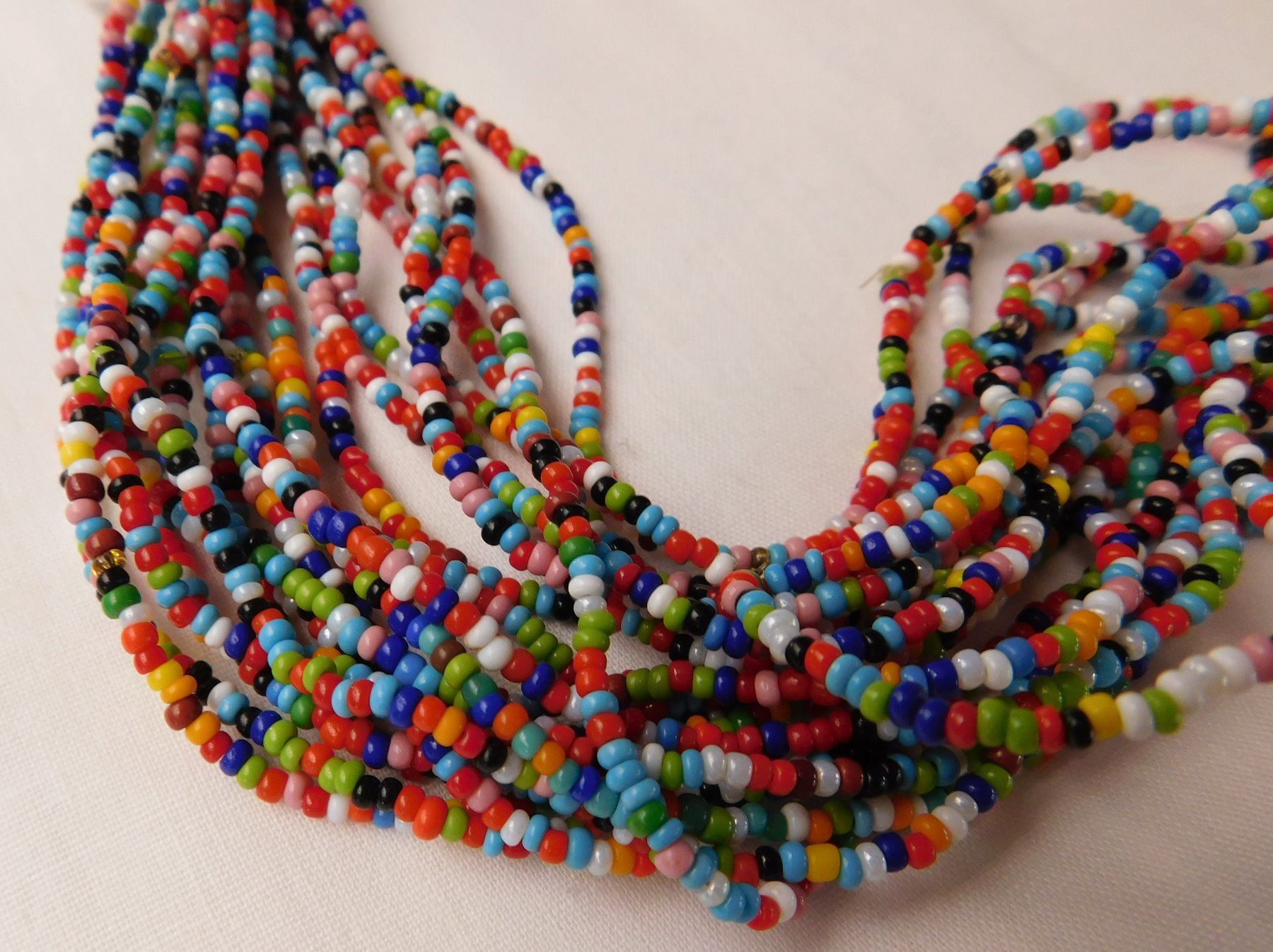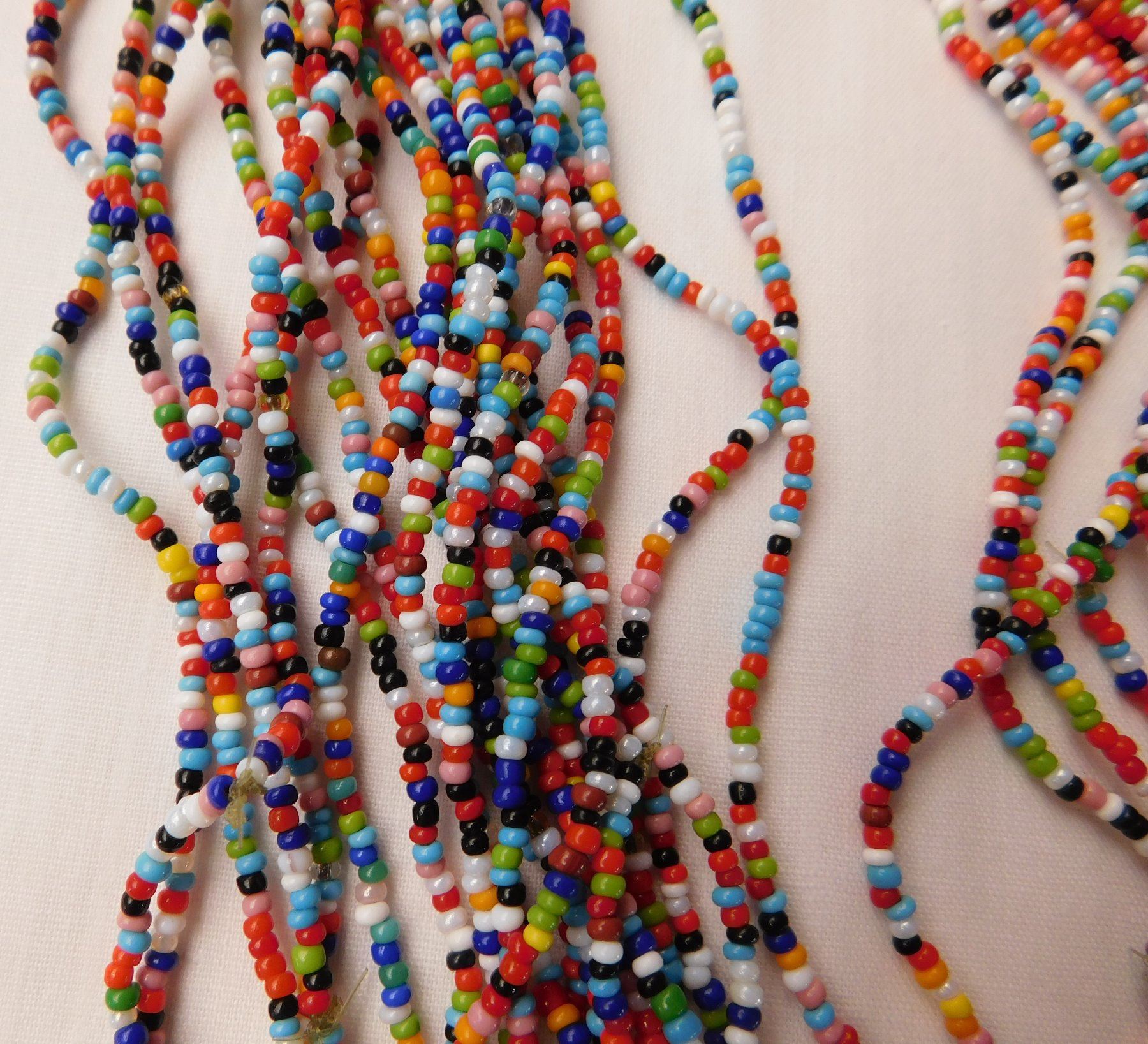 20 Strand Trade Bead Necklace, 20th century item. Made of glass, the item hangs about 12" long as worn. European. Condition: Good, see images. Shipping: $12.50 w/insurance and signature.