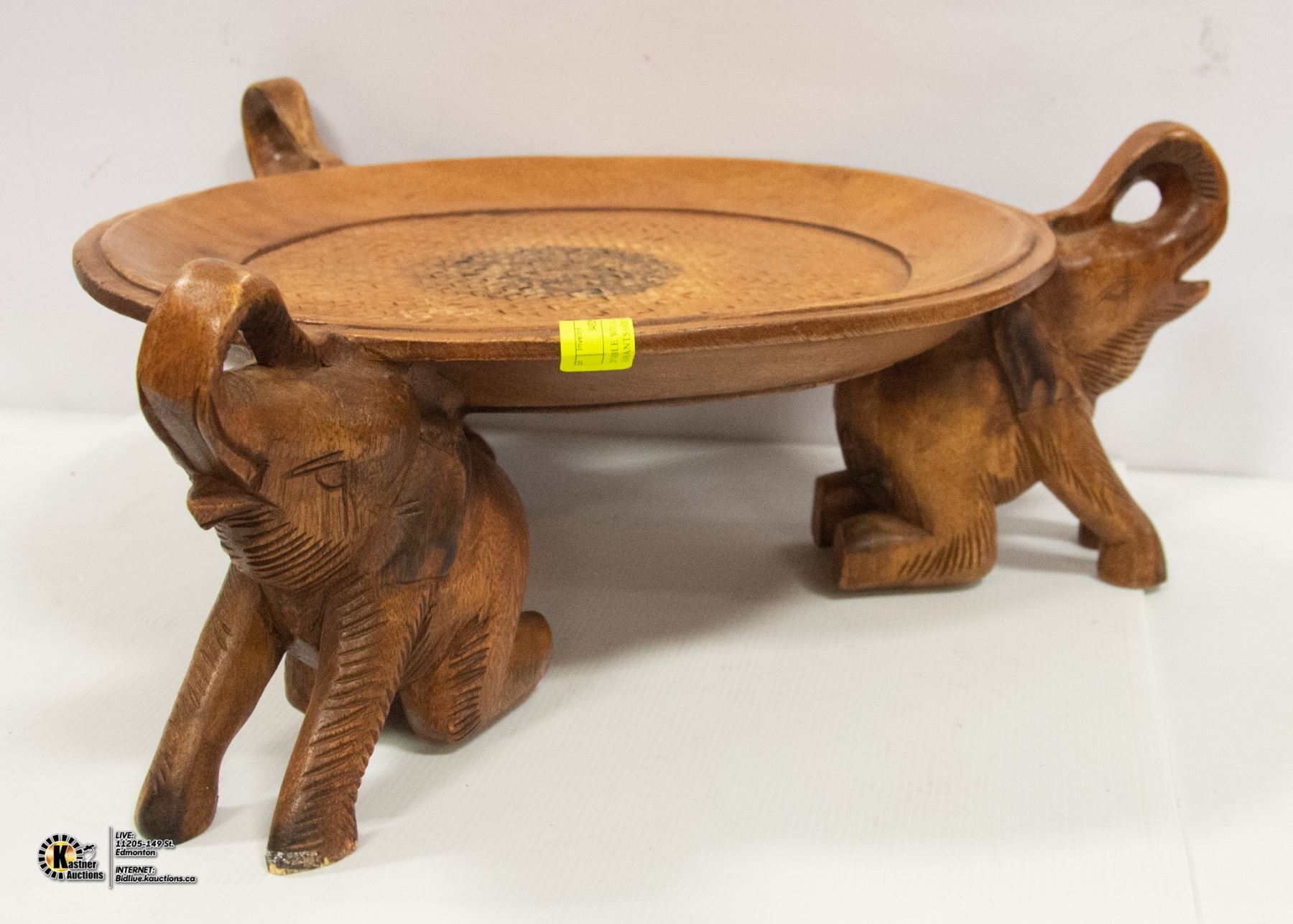 20" TABLE WITH 3 LUCKY ELEPHANTS HANDCARVED