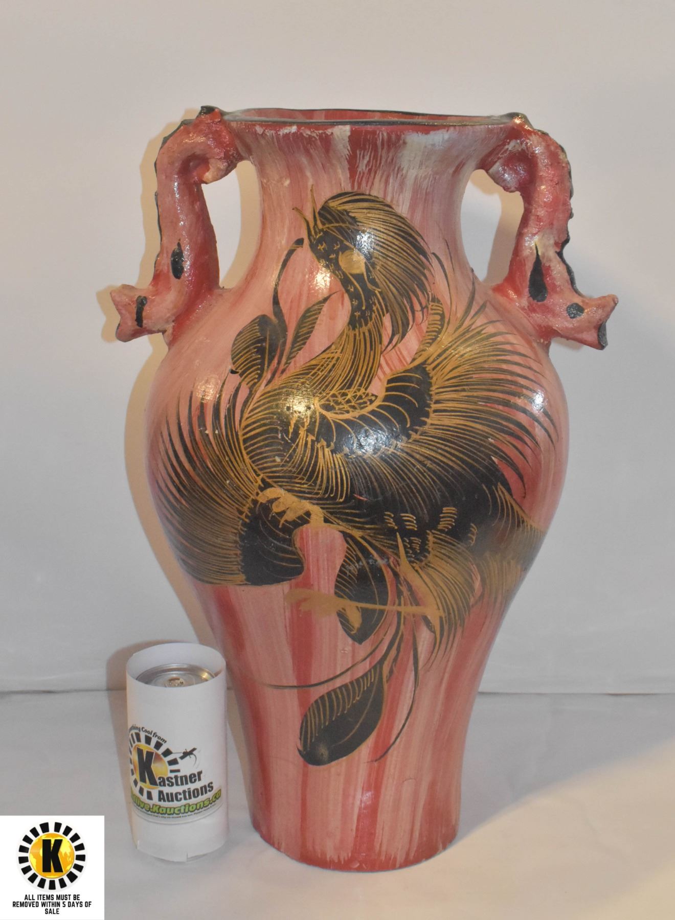 20" TALL ASIAN PEACOCK MOTIF VASE