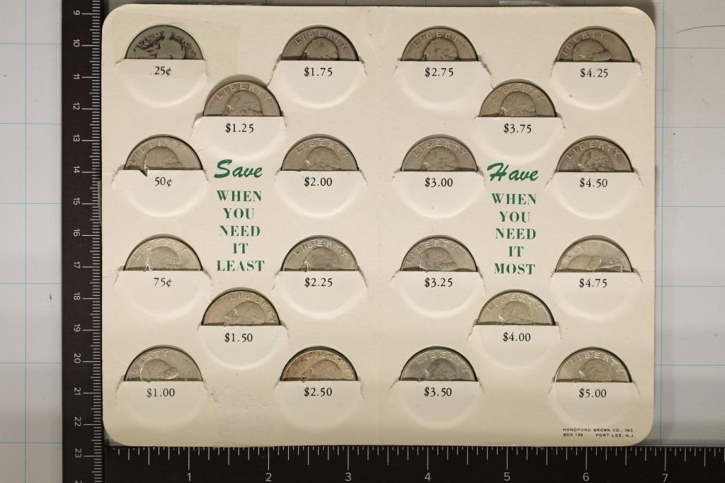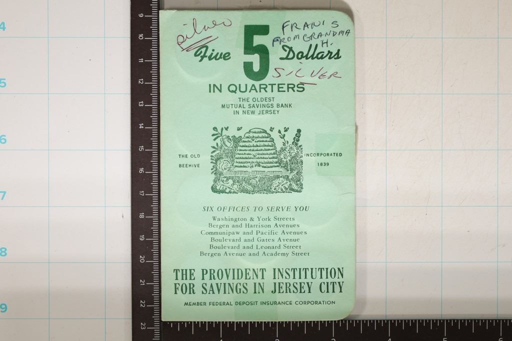 INSTITUTION FOR SAVINGS IN JERSEY CITY BOOKLET. ONE STANDING LIBERTY QUARTER SOME UNC COINS NOTED