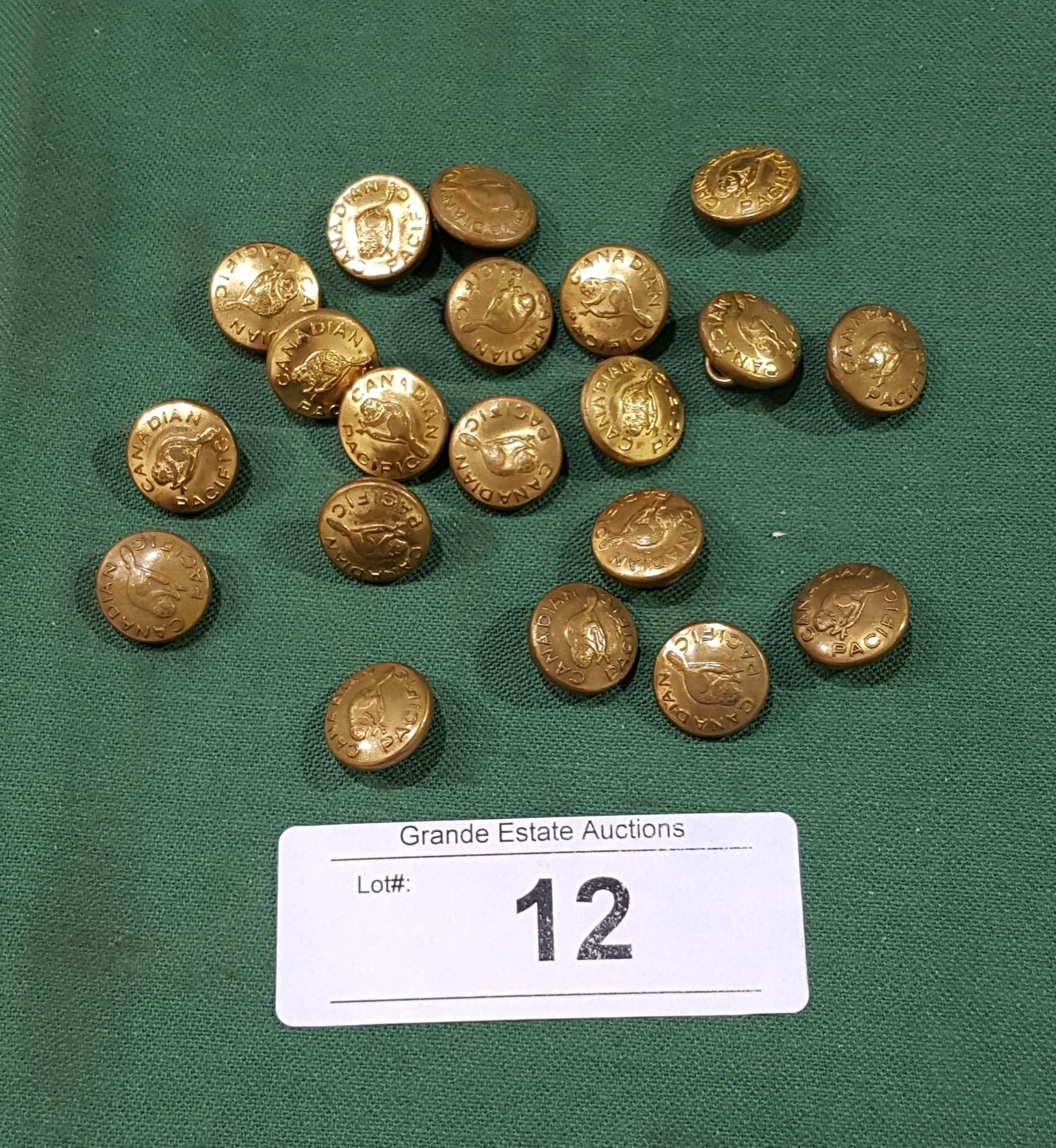 20 VINTAGE CANADIAN PACIFIC RAILWAY UNIFORM BUTTONS
