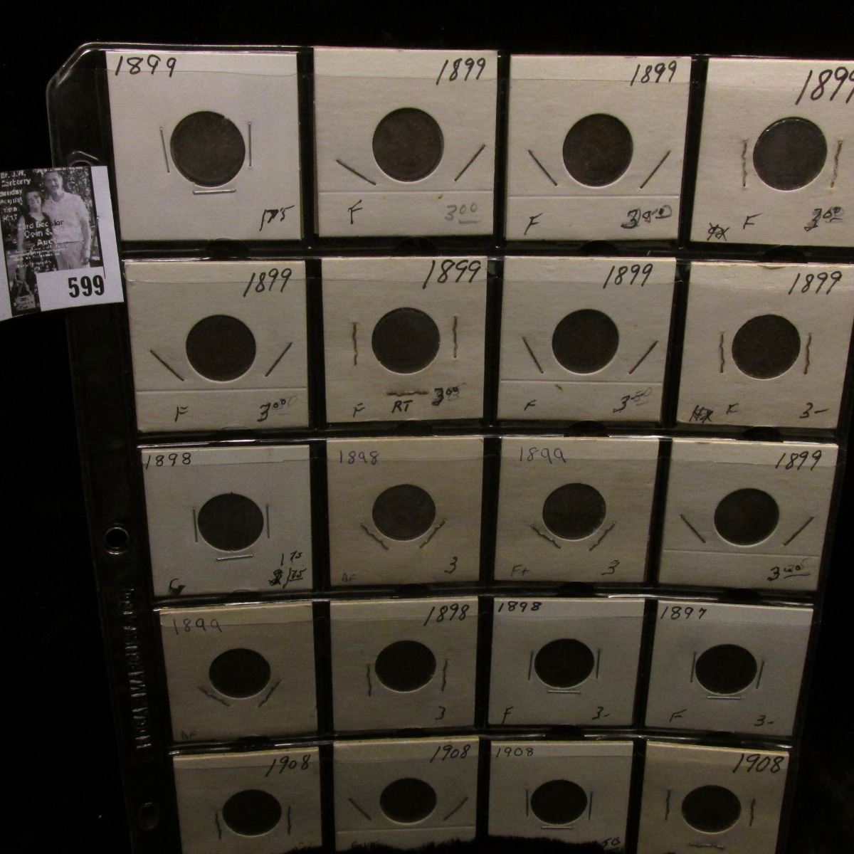 (20) Various Date Indian Head Cents dating 1898-1908 with grades up to VF in a plastic coin page.