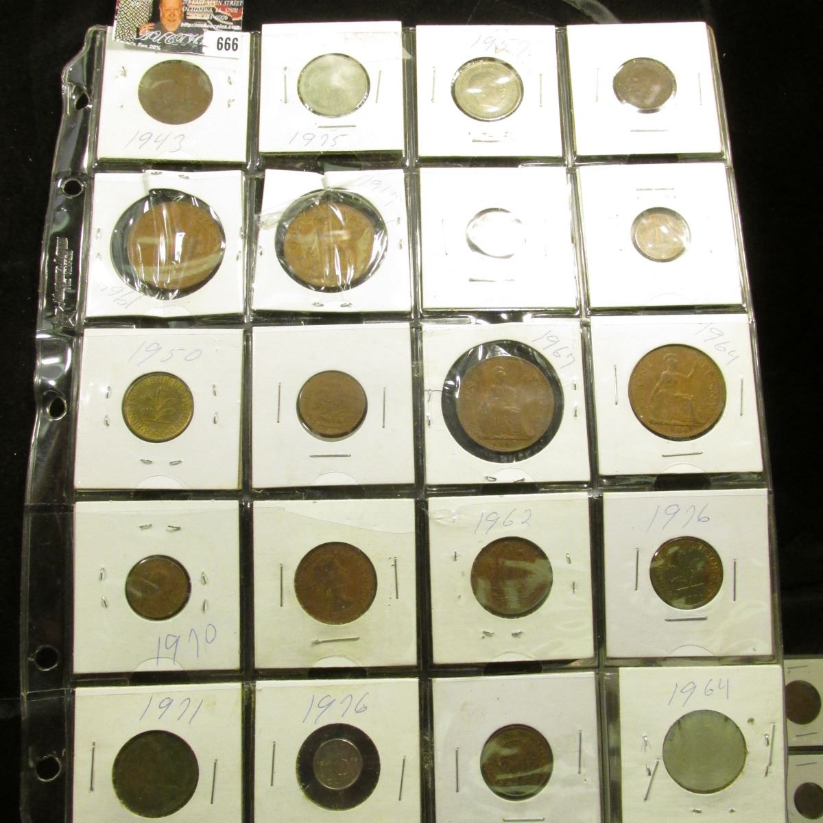 (20) Various Foreign Coins in a plastic page.