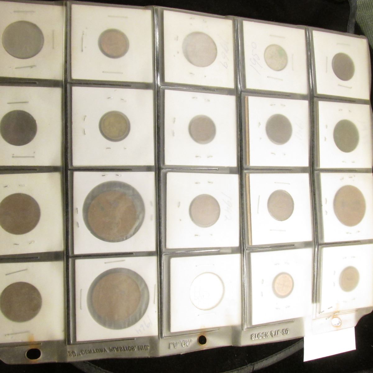 (20) Various Foreign Coins in a plastic page.