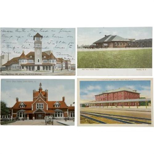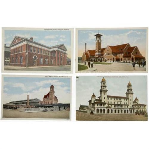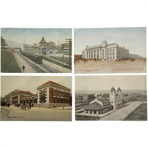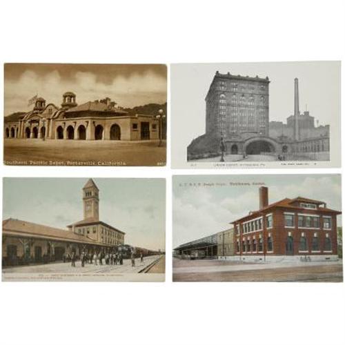 <B>Lot of 20 Vintage Post Cards Picturing Railroad Depots</B></I>, from the early 20th Century, some used, some divided back, and others white bordered. Most near fine or better.<BR><BR><b>Shipping:</b> Flat Material, Small (<a target="_blank" href="http://www.heritageauctions.com/common/shipping.php">view shipping information</a>)