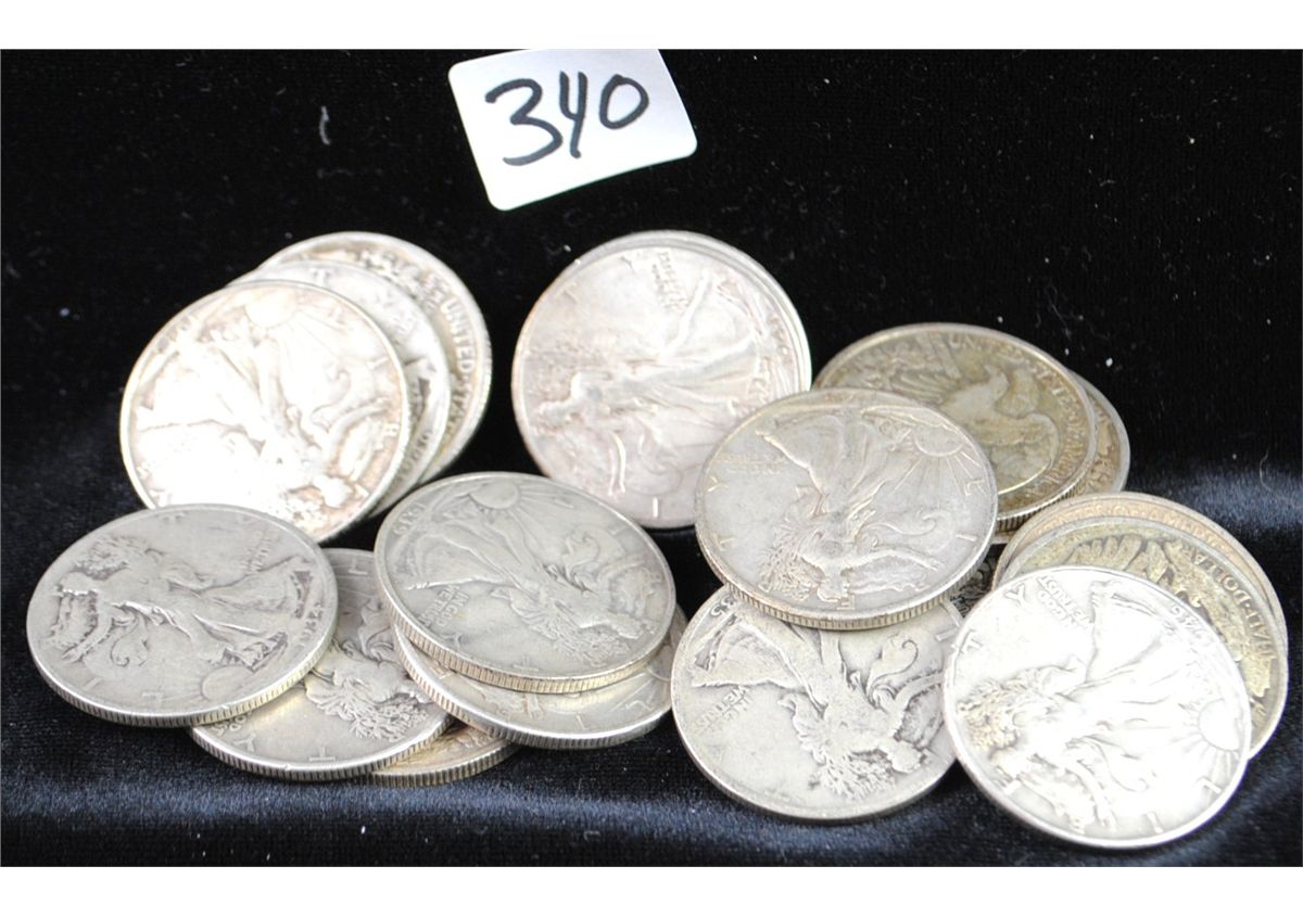 20 WALKING LIBERTY HALF DOLLARS FROM SAFE DEPOSIT - MIXED DATES AND MINTS - SOLD PER COIN TIMES 20