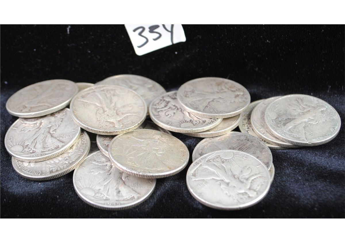 20 WALKING LIBERTY HALF DOLLARS FROM SAFE DEPOSIT - MIXED DATES AND MINTS - SOLD PER COINT TIMES 20