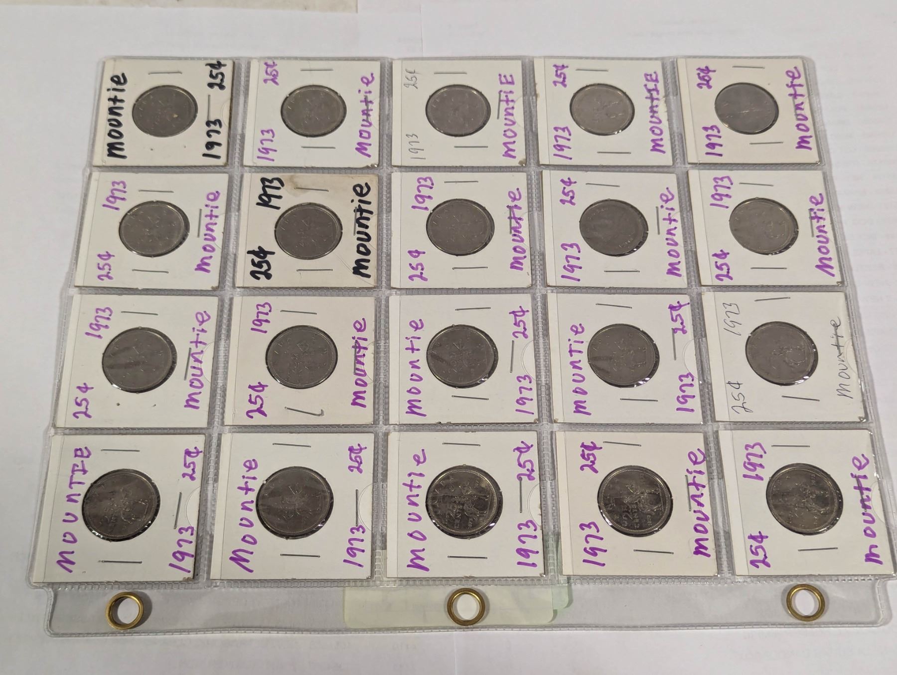 20 X1973 MOUNTIE 25-CENT COINS
