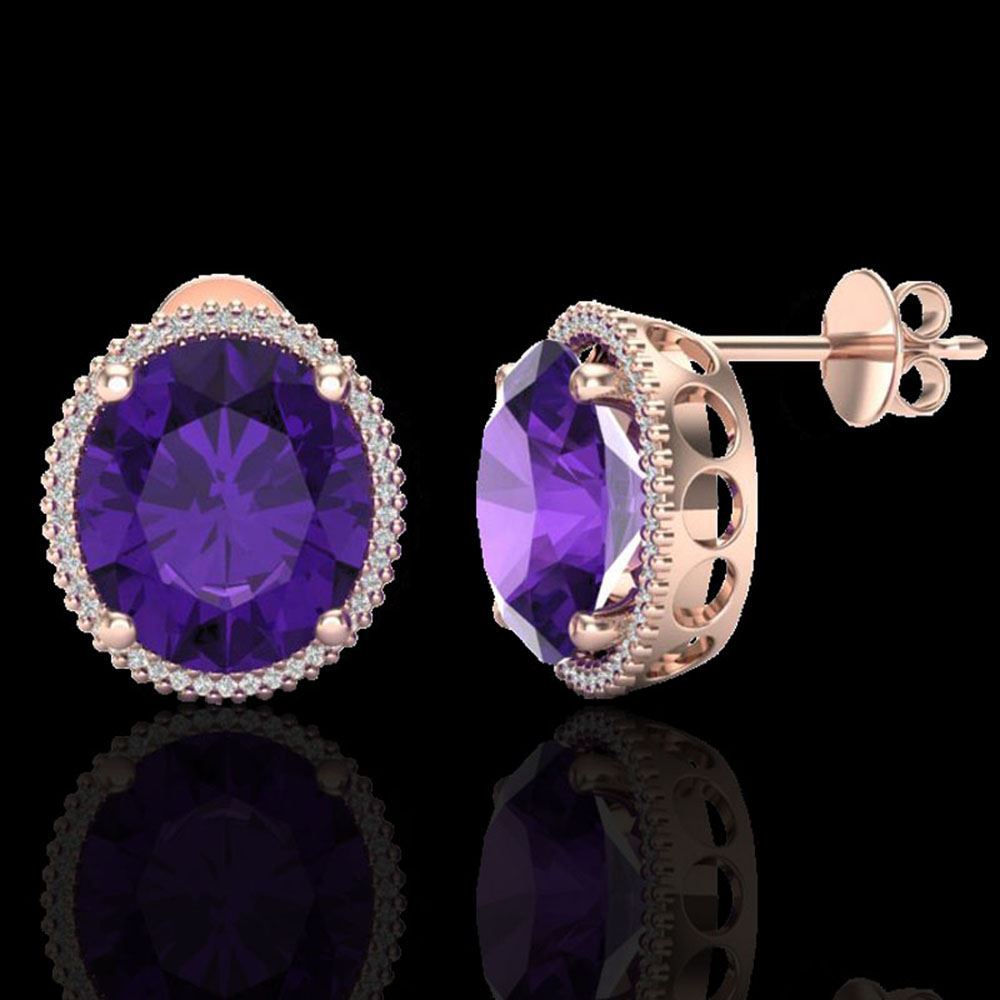 REF-109F3M - SKU: 20261 ---- 20 ctw Amethyst & Micro VS/SI Diamond Pave Earrings 14k Rose Gold