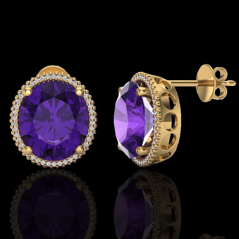 SKU: 20263 ---- 20 ctw Amethyst & Micro VS/SI Diamond Pave Earrings 18k Yellow Gold