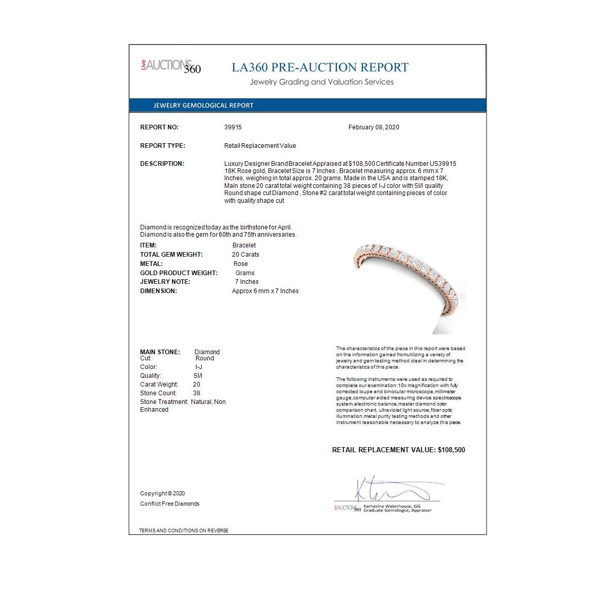 REF-2325W2H - SKU: 39915 ---- 20 ctw Certified SI Diamond Bracelet 18K Rose Gold