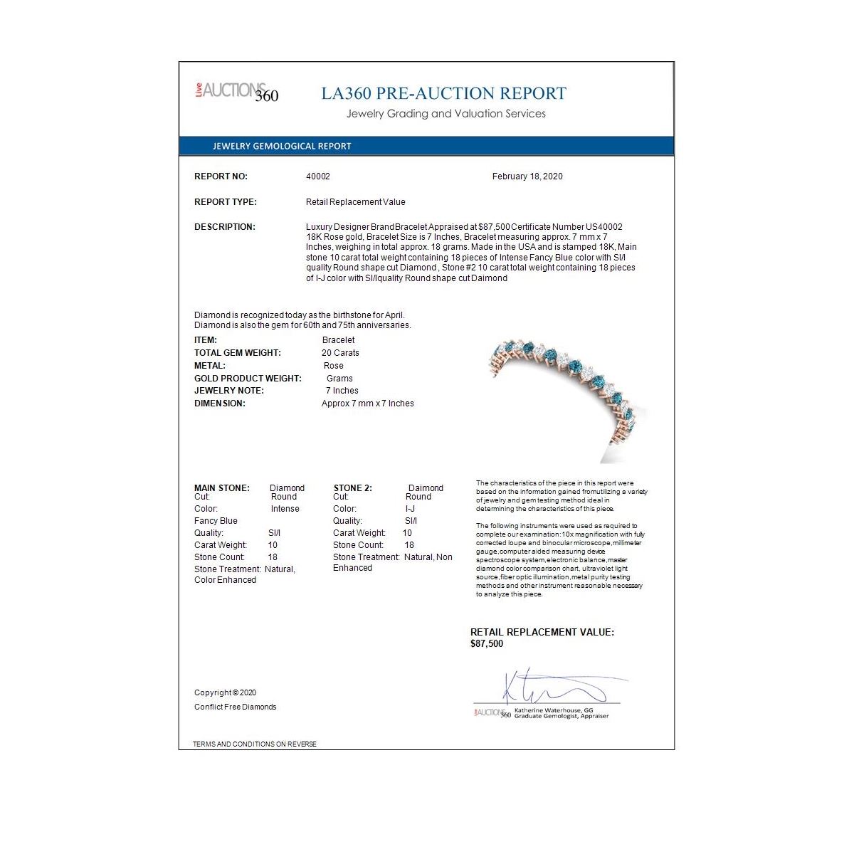 REF-1875H2R - SKU: 40002 ---- 20 ctw Certified SI/I Intense Blue Diamond Bracelet 18K Rose Gold
