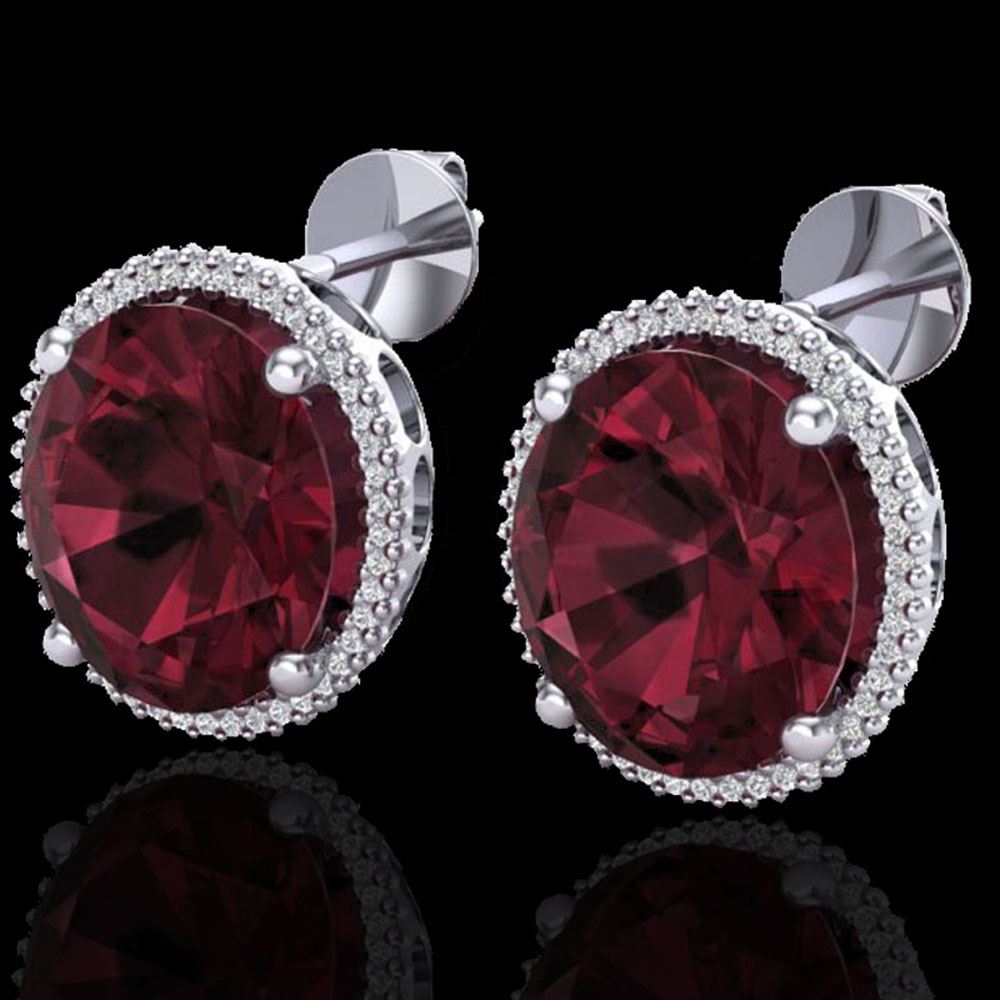 REF-118X2A - SKU: 20273 ---- 20 ctw Garnet & Micro Pave VS/SI Diamond Earrings 18k White Gold