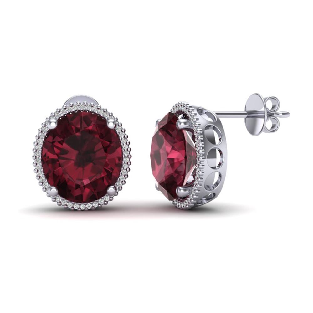 SKU: 20273 ---- 20 ctw Garnet & Micro Pave VS/SI Diamond Earrings 18k White Gold