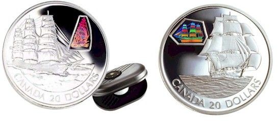 20 dollars coins; Transportation on Land, Sea and Rail Series; 2001 The Marco Polo & 2002 The William Lawrence. Both coins in original casing with COA and boxes. Lot of 2 coins