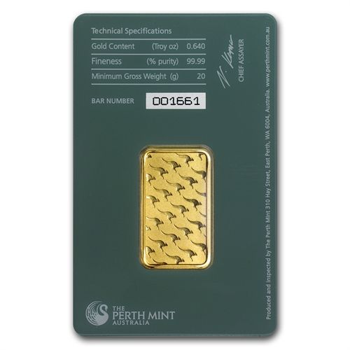 20 gram Perth Mint Gold Bar .9999 Fine (In Assay) **|**|** Denomination: 1 ; MSRP: $1600