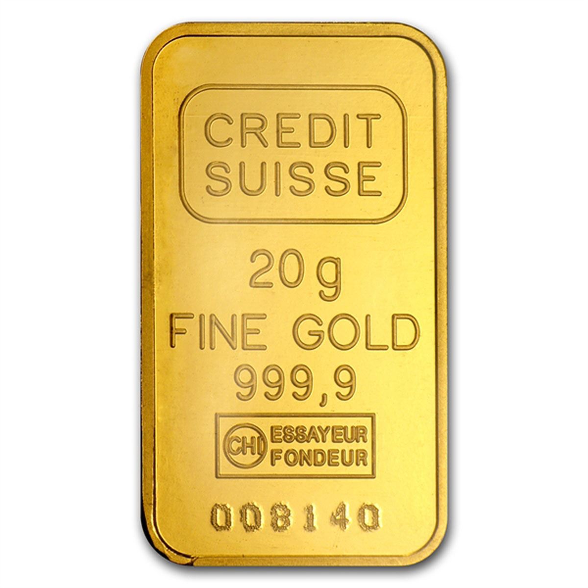 20 gram Statue of Liberty Credit Suisse Gold Bar .9999 Fine