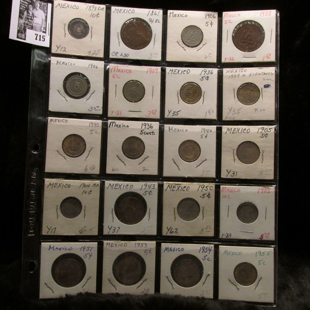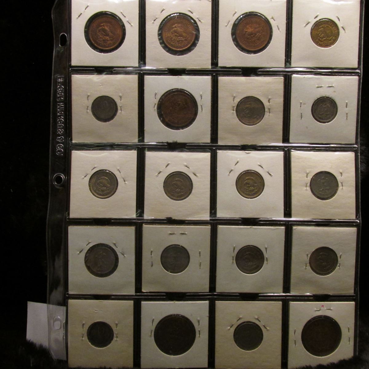 20-pocket plastic page of Mexican Coins and at least one dates back to 1861, includes several Silver coins,