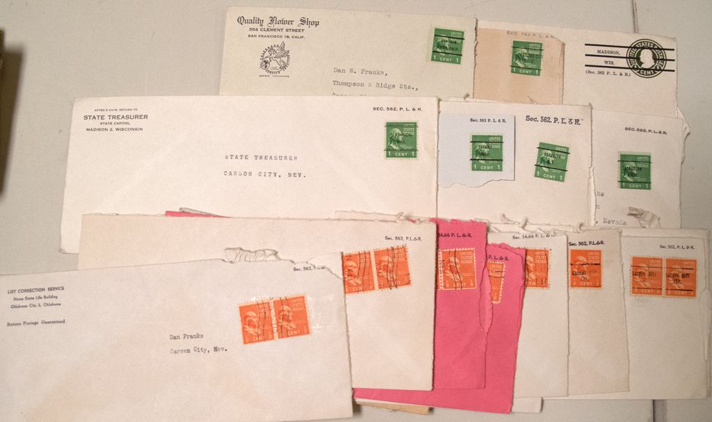 Carson City, Madison, Redwood, City, San Francisco, Stockton, Brooklyn, Detroit, Elko, Winnipeg, Shrub Oak in New York. 1940's.