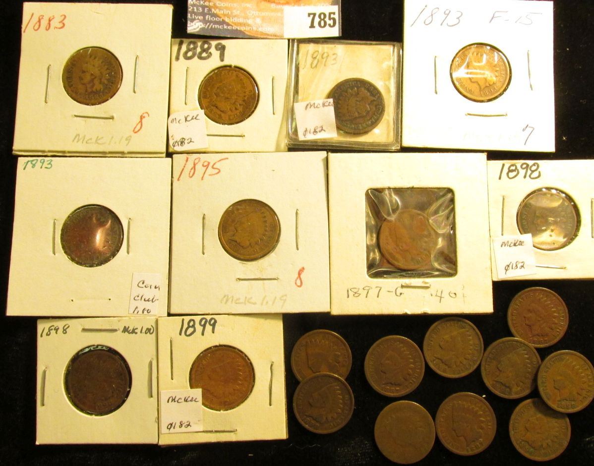 (20) various grade Indian Head Cents dating before 1900, some duplicate dates, all average circulate