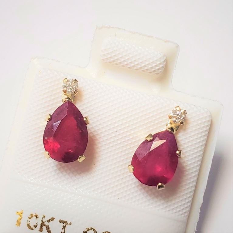 10K Yellow Gold Ruby(1.8ct) Moissanite(0.05ct) Earrings, Made in Canada, Suggested Retail Value $200