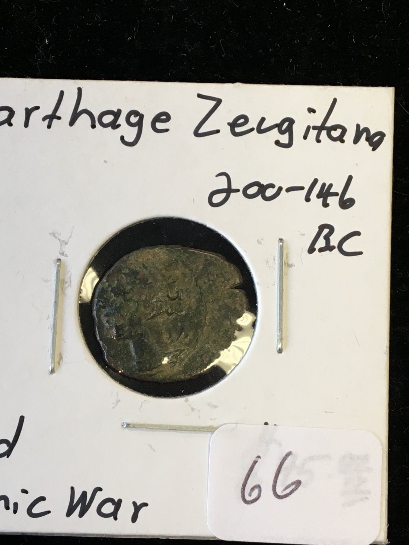 NICE BRONZE COIN DATING TO THE 3RD PUNIC WAR! HEAD OF TANIT?HORSE AND PALM REE REVERSE.