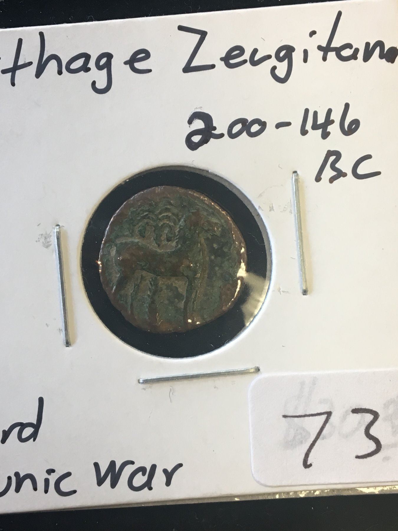 NICE GRADE BRONZE CARTHAGINIAN COIN,SECOND PUNIC WAR.LEFT FACING BUST AND HORSE AND PALM TREE!