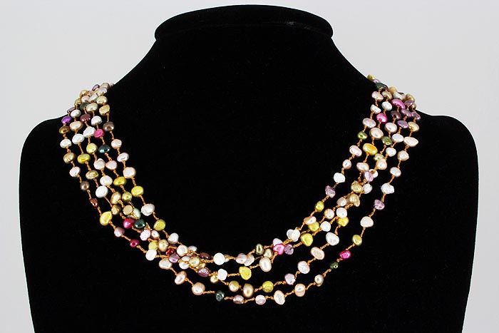 200.89CTW Multi Color Thread Freshwater Pearl Necklace **|**|** 19 inches Multi-color 5 Strand Thread Freshwater Pearl Necklace w/ Botton Lock ; MSRP: $300