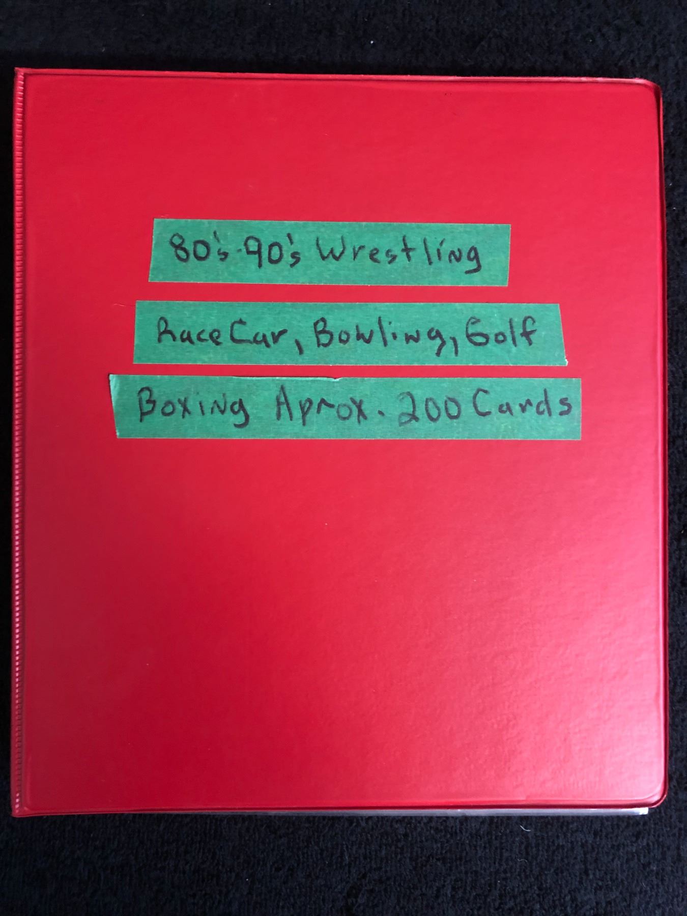 200 ASSORTED MULTI SPORT CARDS (WRESTLING, RACE CAR, BOWLING, GOLF, BOXING)