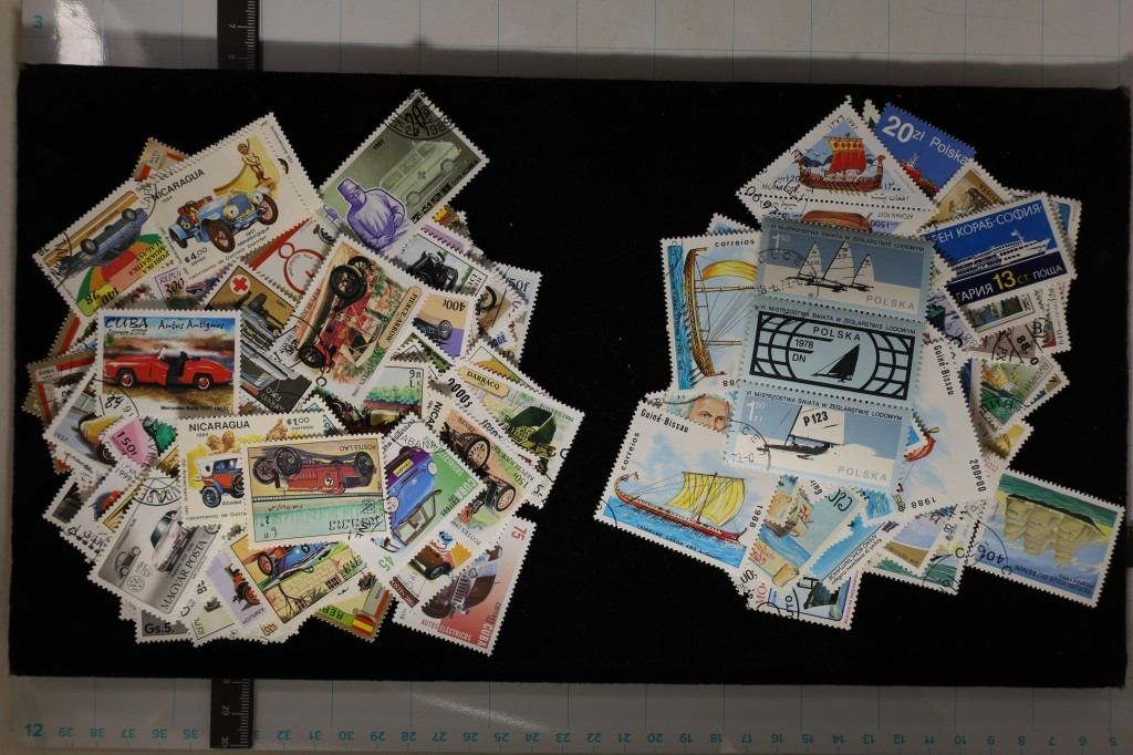 STAMPS, 100 AUTOMOBILE AND 100 SHIPS. ALL CRISP